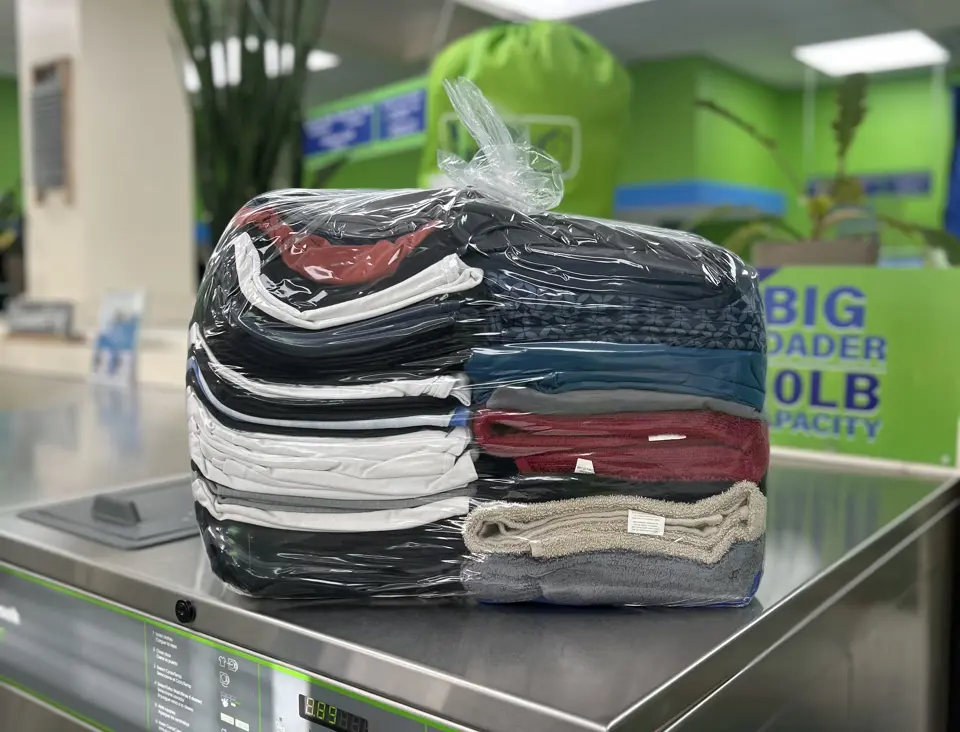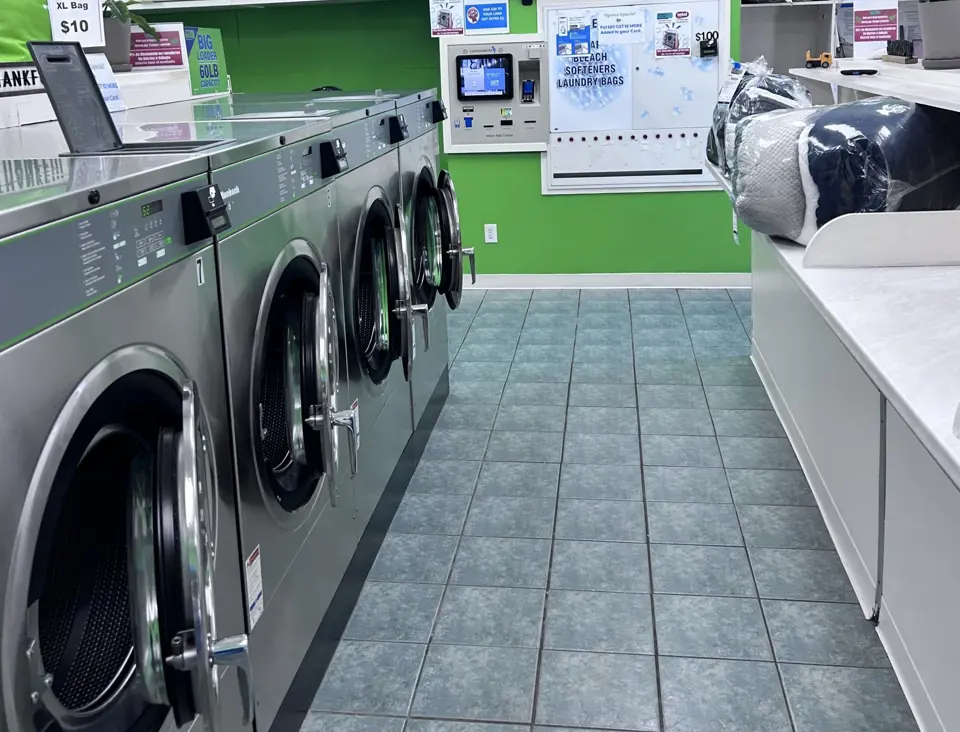 - Laundry products available behind the counter (detergent, softener, dryer sheets)